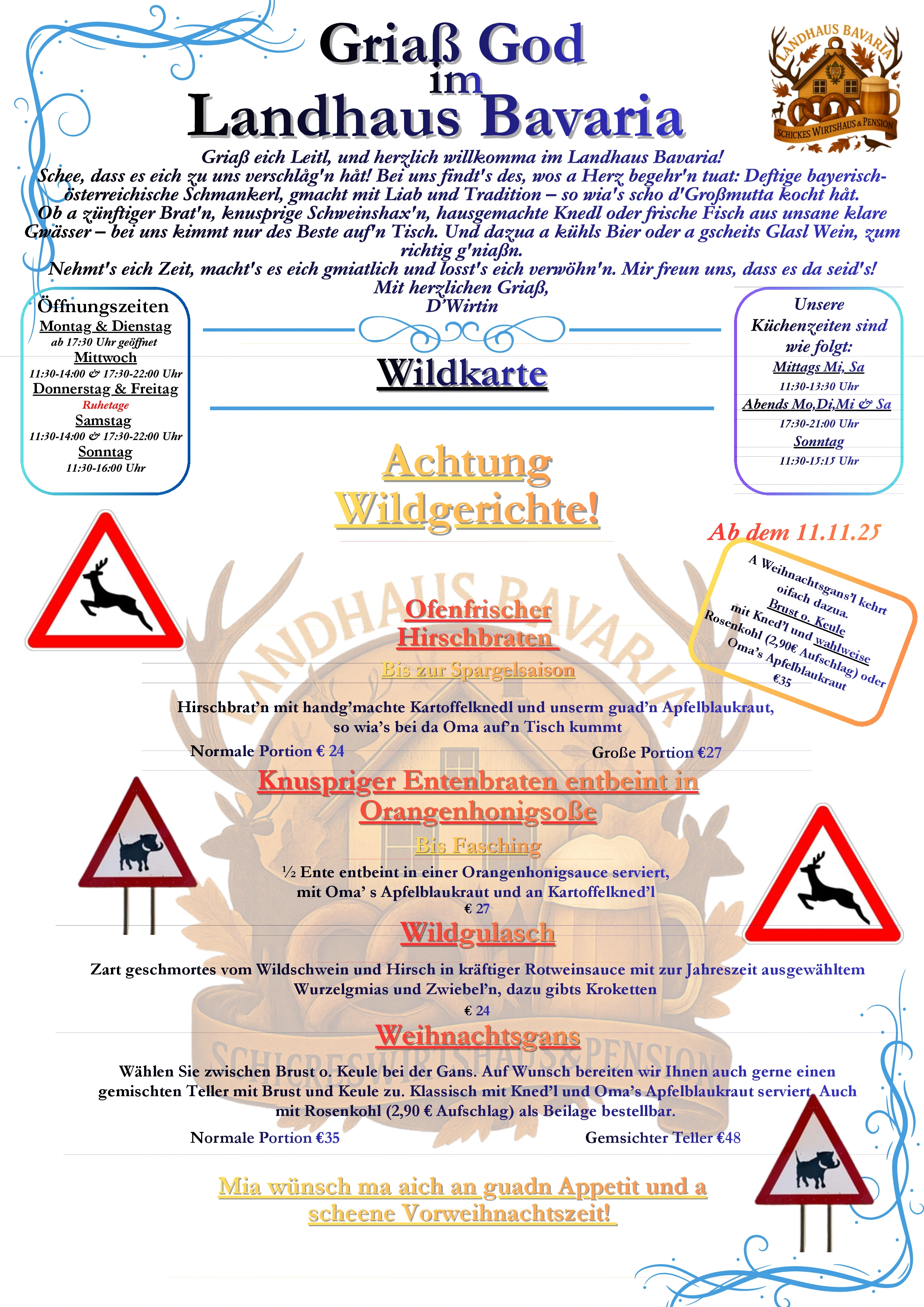Samstag: 11:30-14:00 Uhr & 17:30-22:00 Uhr (Küchenschluss 21:00 Uhr!)